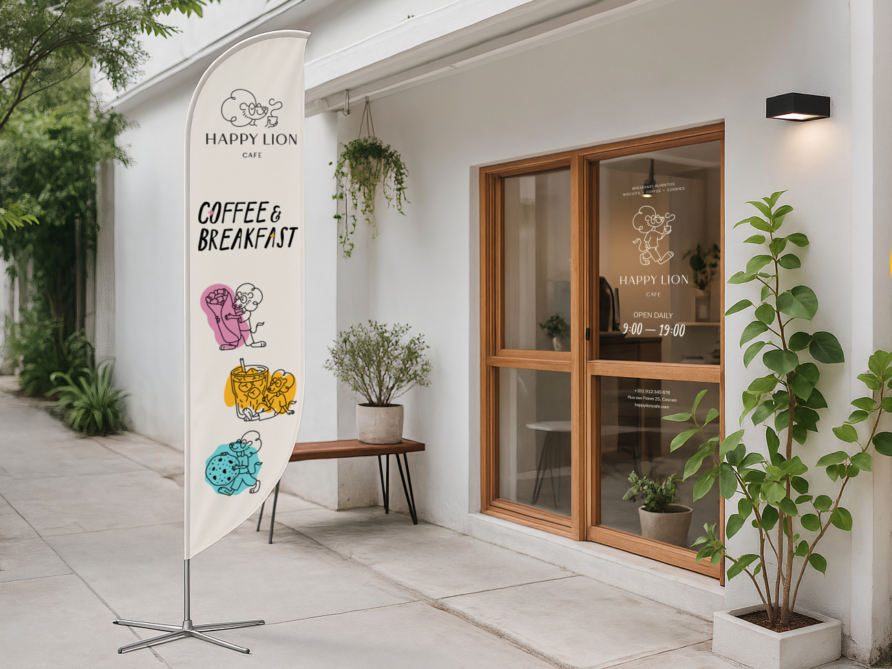 Brand identity and visuals for Happy Lion, a cozy neighborhood café known for its friendly vibe and great breakfast. Designed for young families, students, and tourists, the brand includes a playful mascot, logo, color system, typography, menus, signage, and business cards - everything to create a warm, characterful experience.