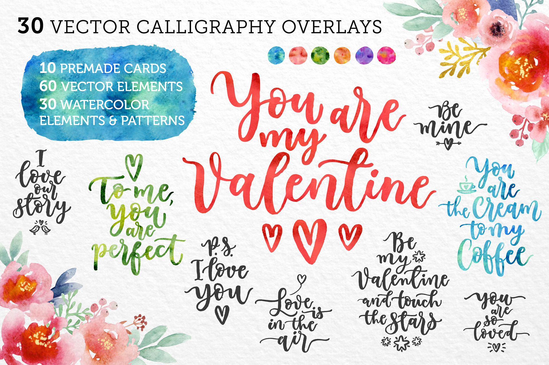 A selection of bestselling digital products – lettering sets, vector illustrations, and ready-to-use design packs created for the global Creative Market audience.