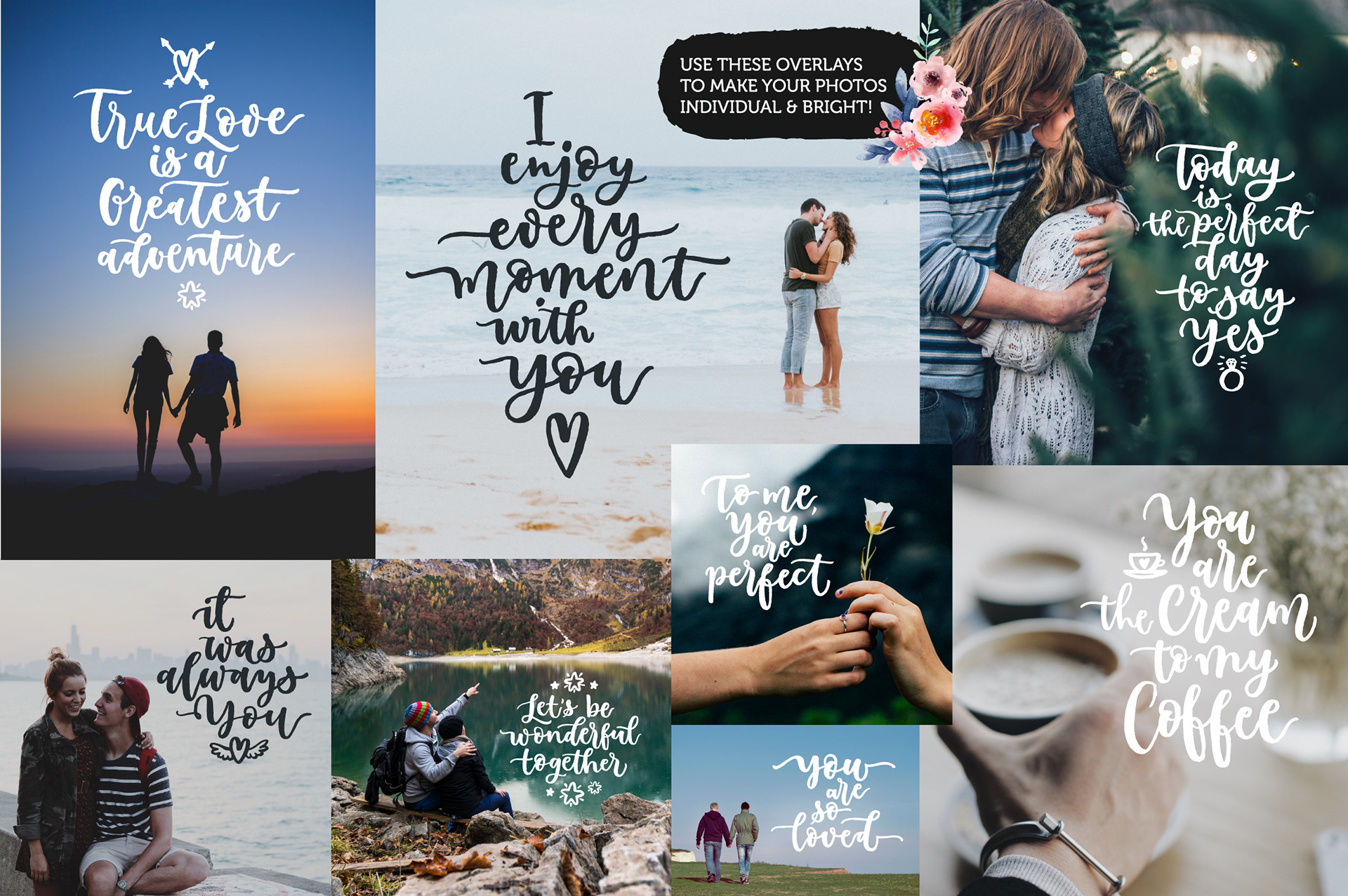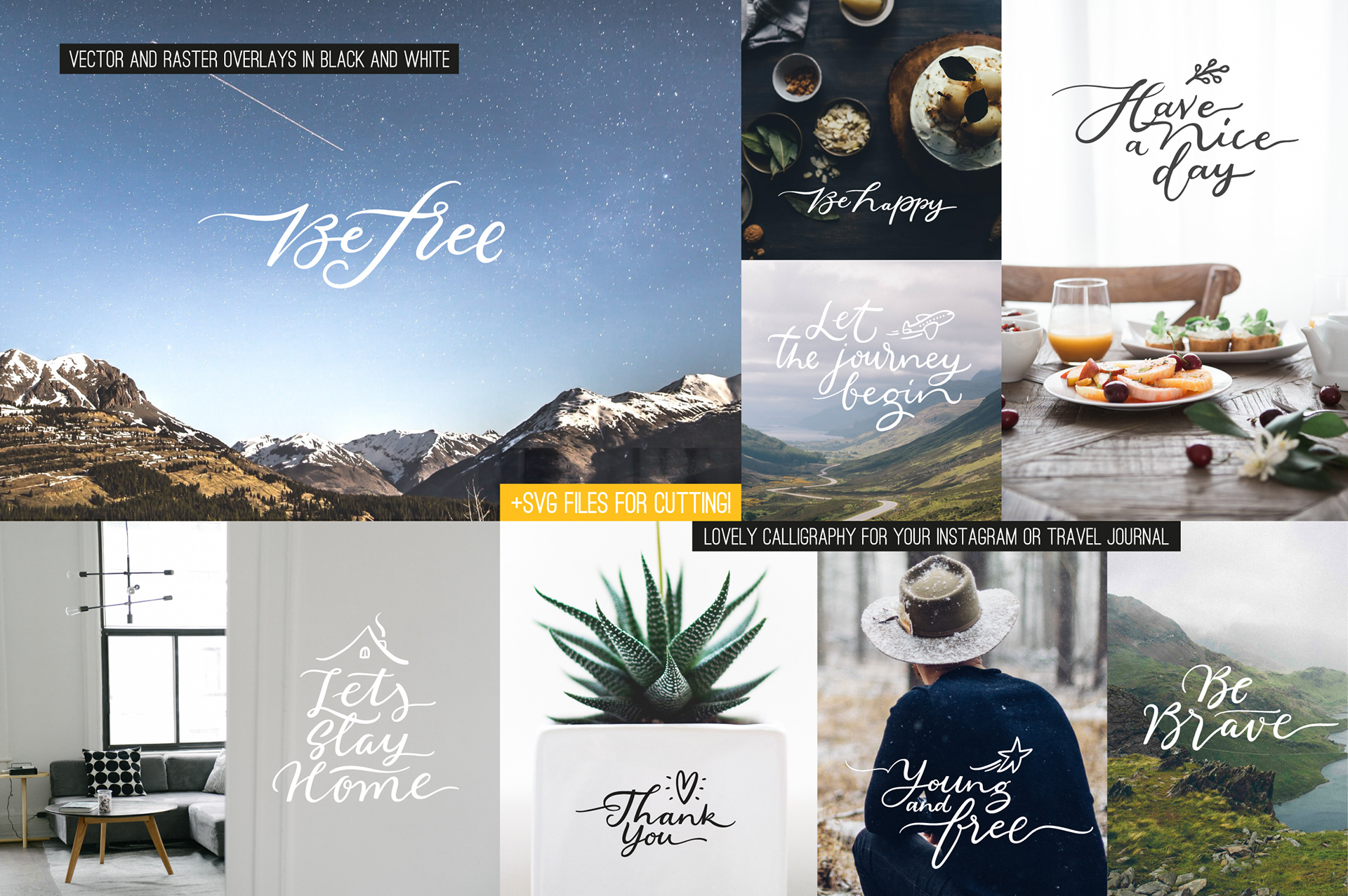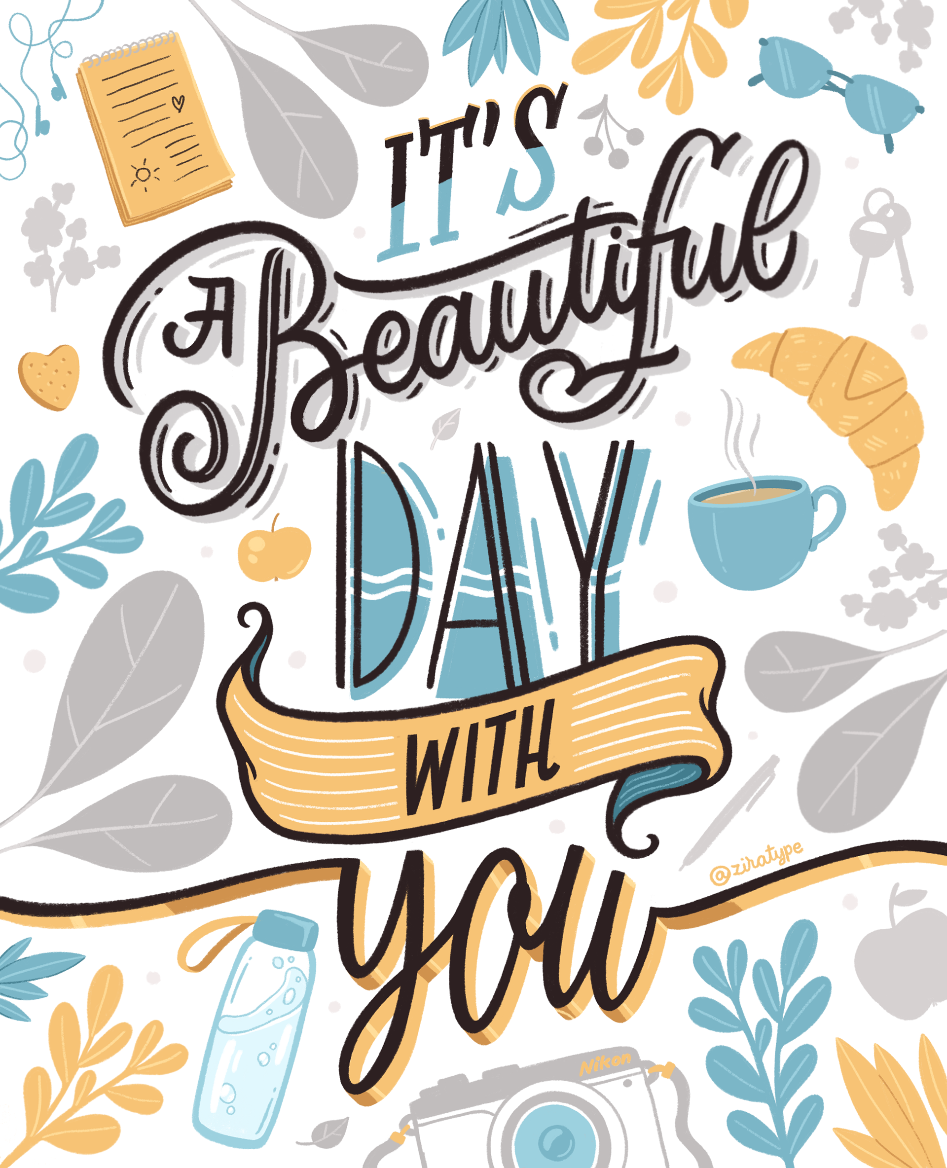 Personal and commissioned lettering artworks for lifestyle brands, print collections, and Creative Market releases.
