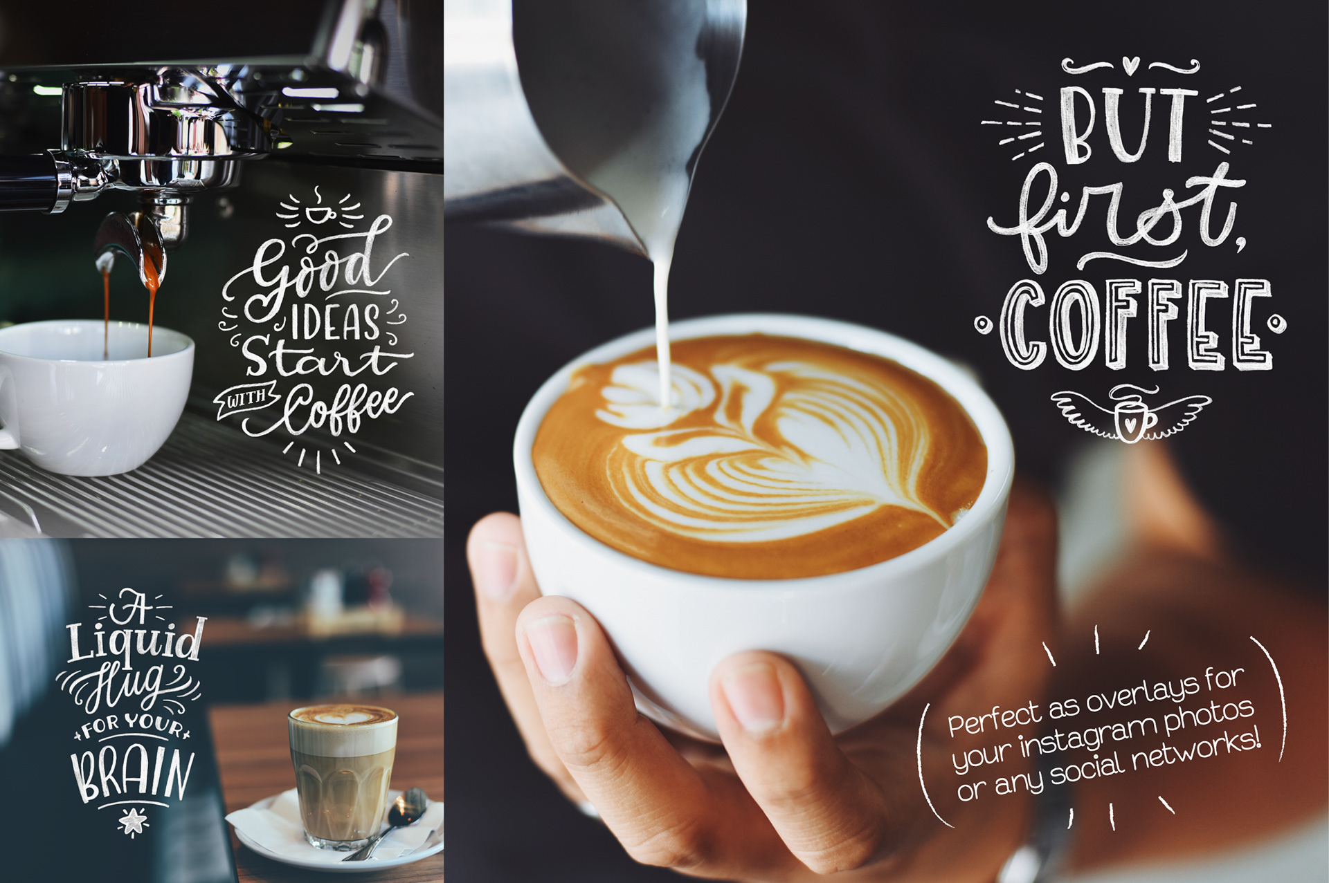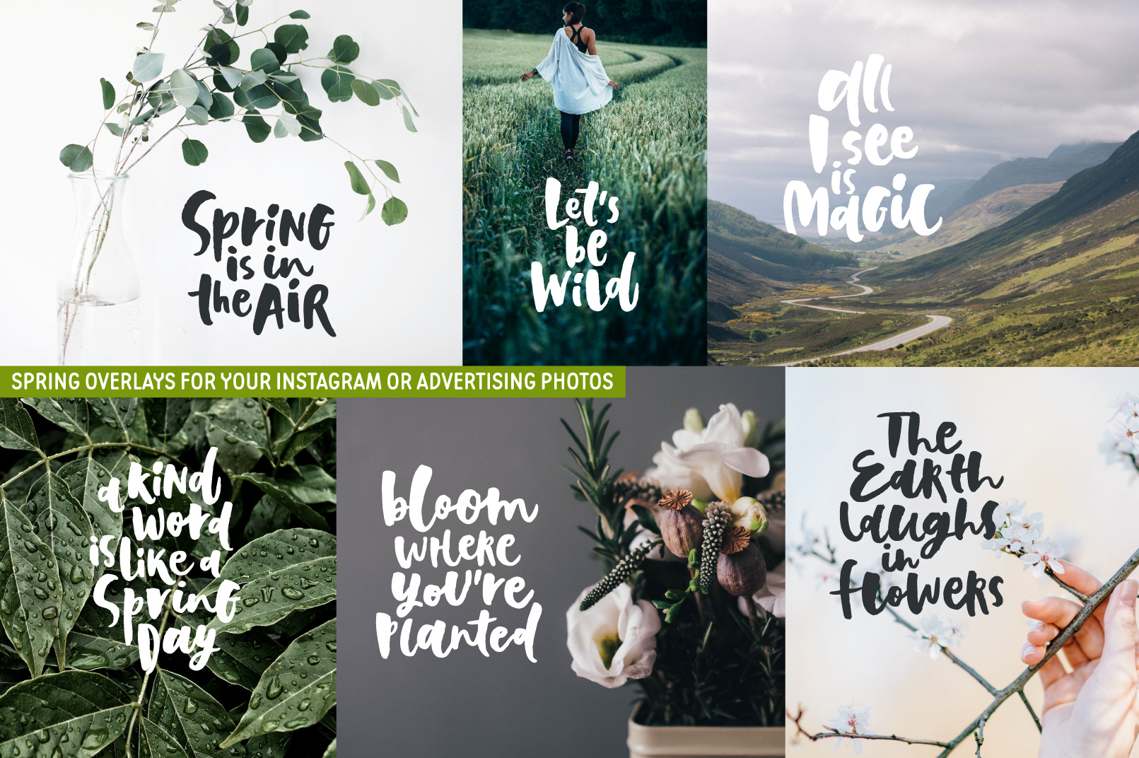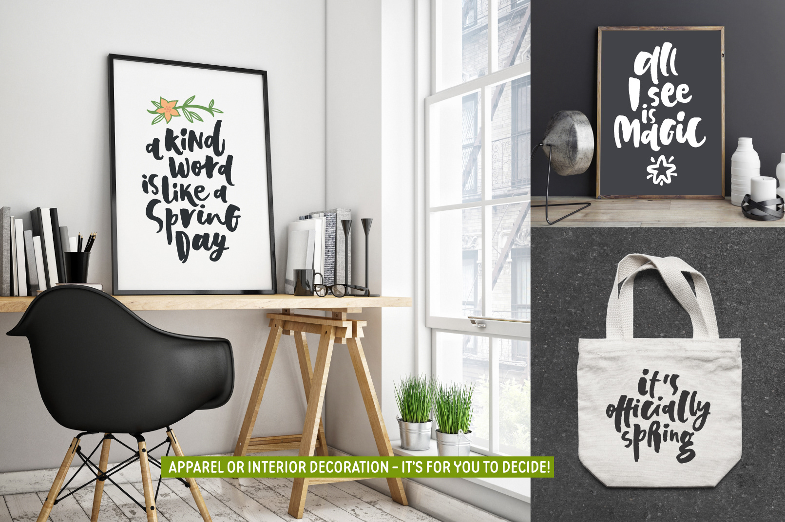 Personal and commissioned lettering artworks for lifestyle brands, print collections, and Creative Market releases.