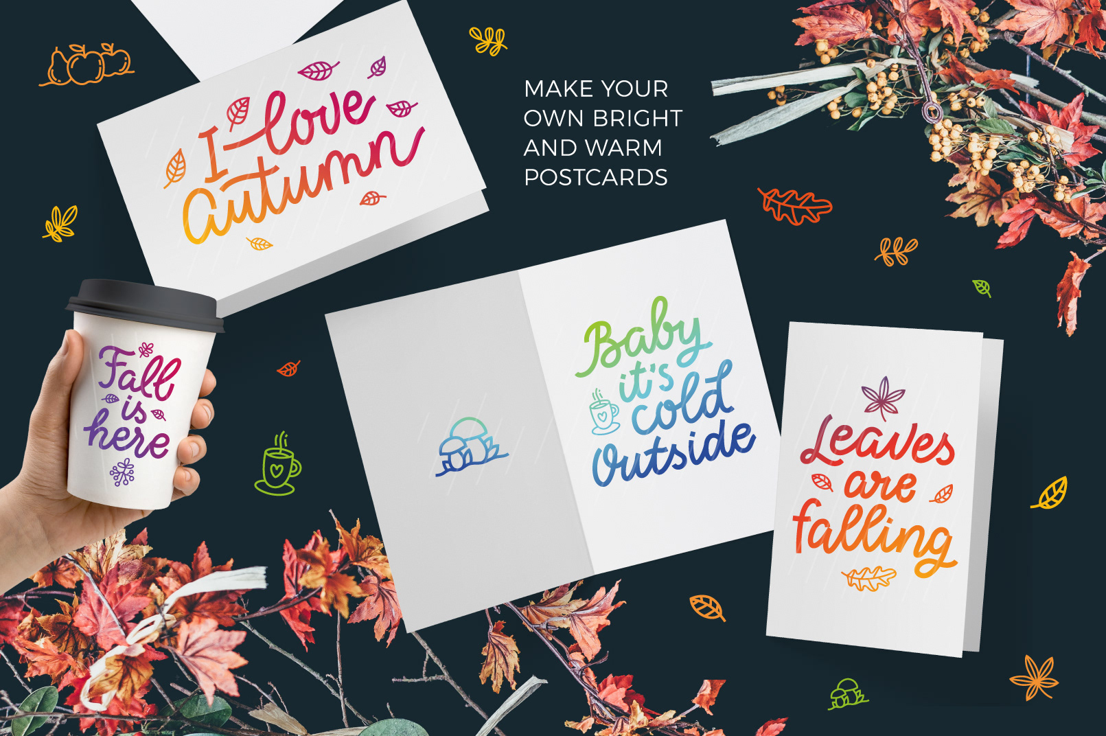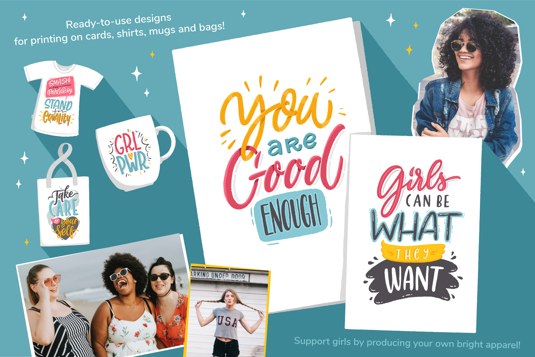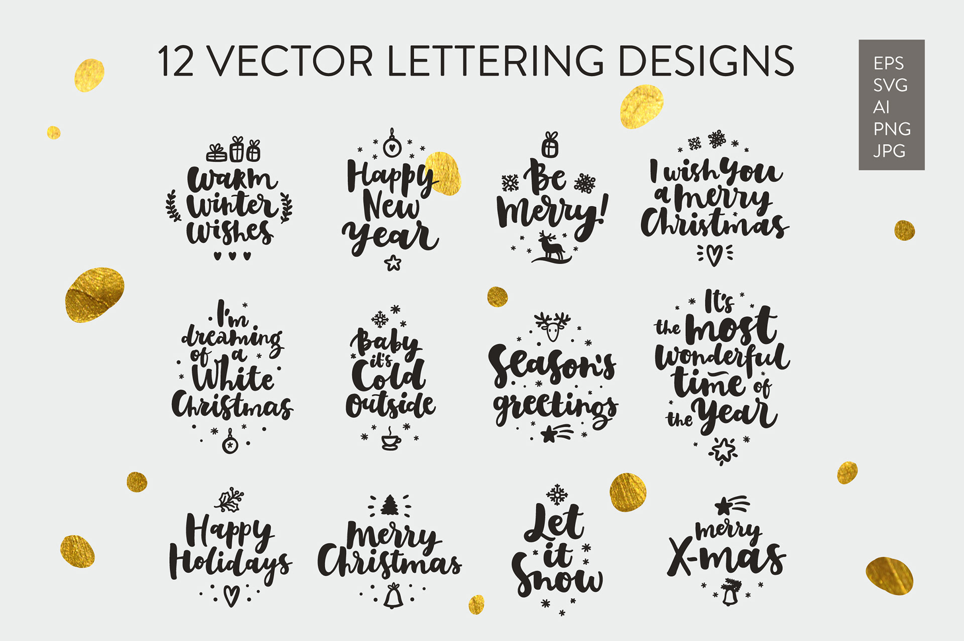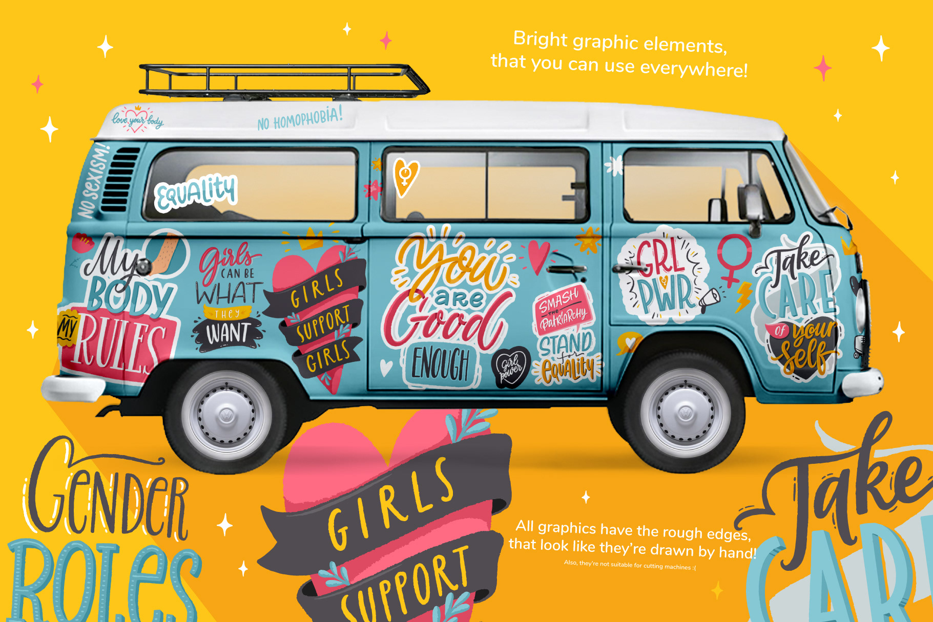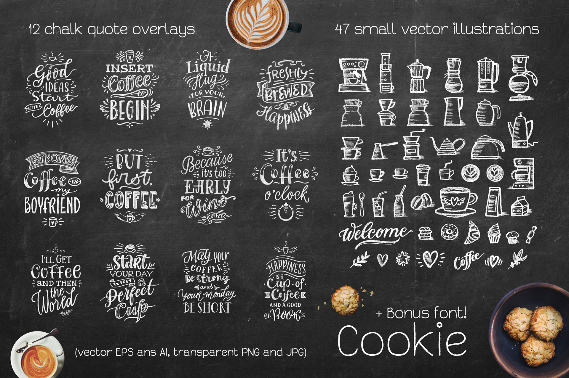 These collections combine expressive typography, playful characters, and decorative graphics designed for print, web, and social media use.