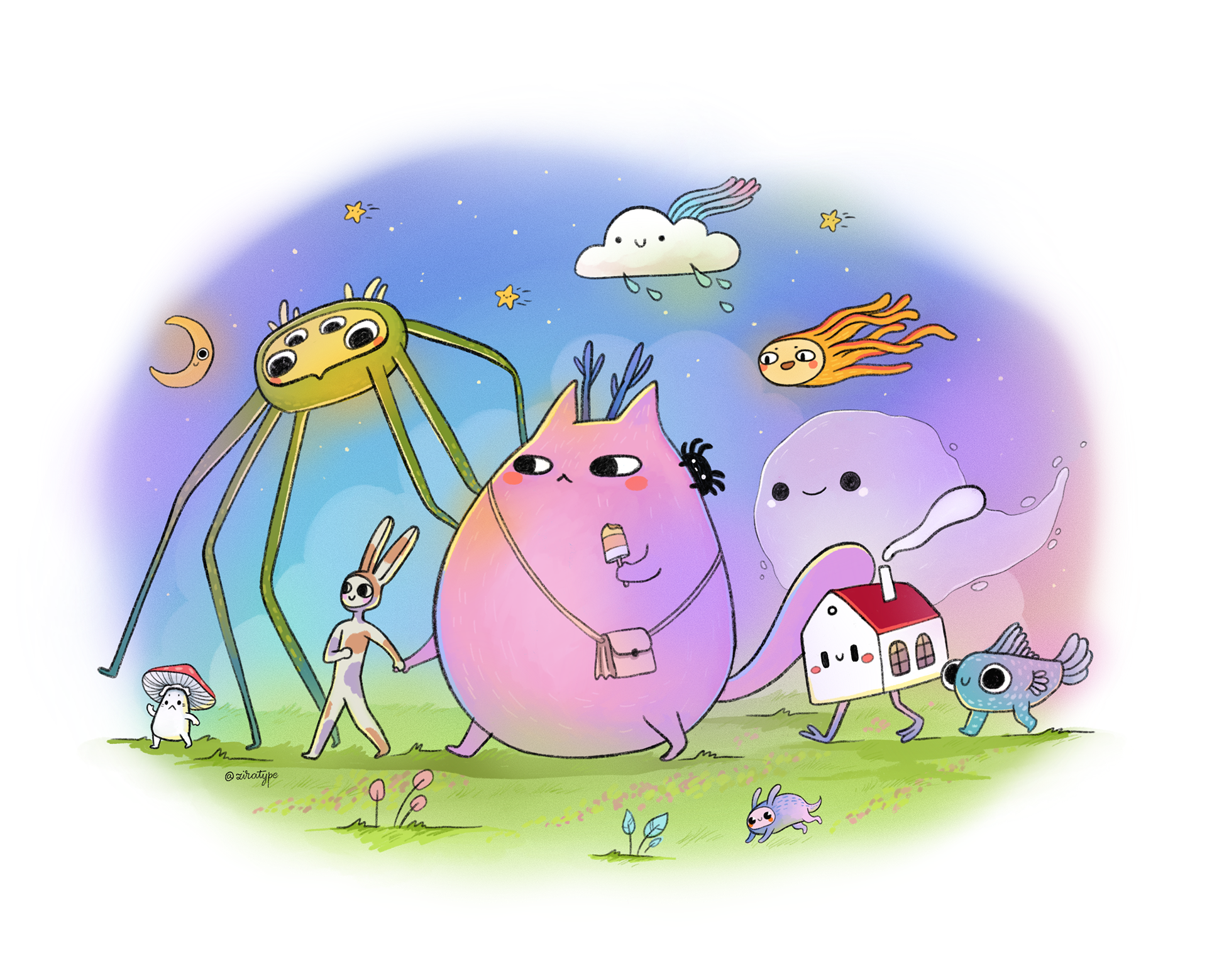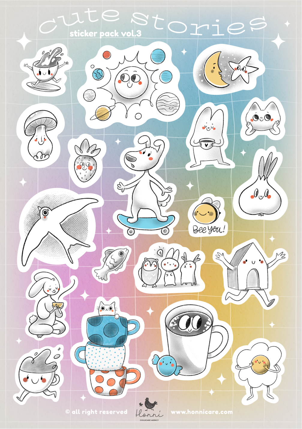 Drawn in a soft minimal style with pastel palettes and light textures, these pieces were designed to evoke curiosity, warmth, and a quiet sense of wonder.