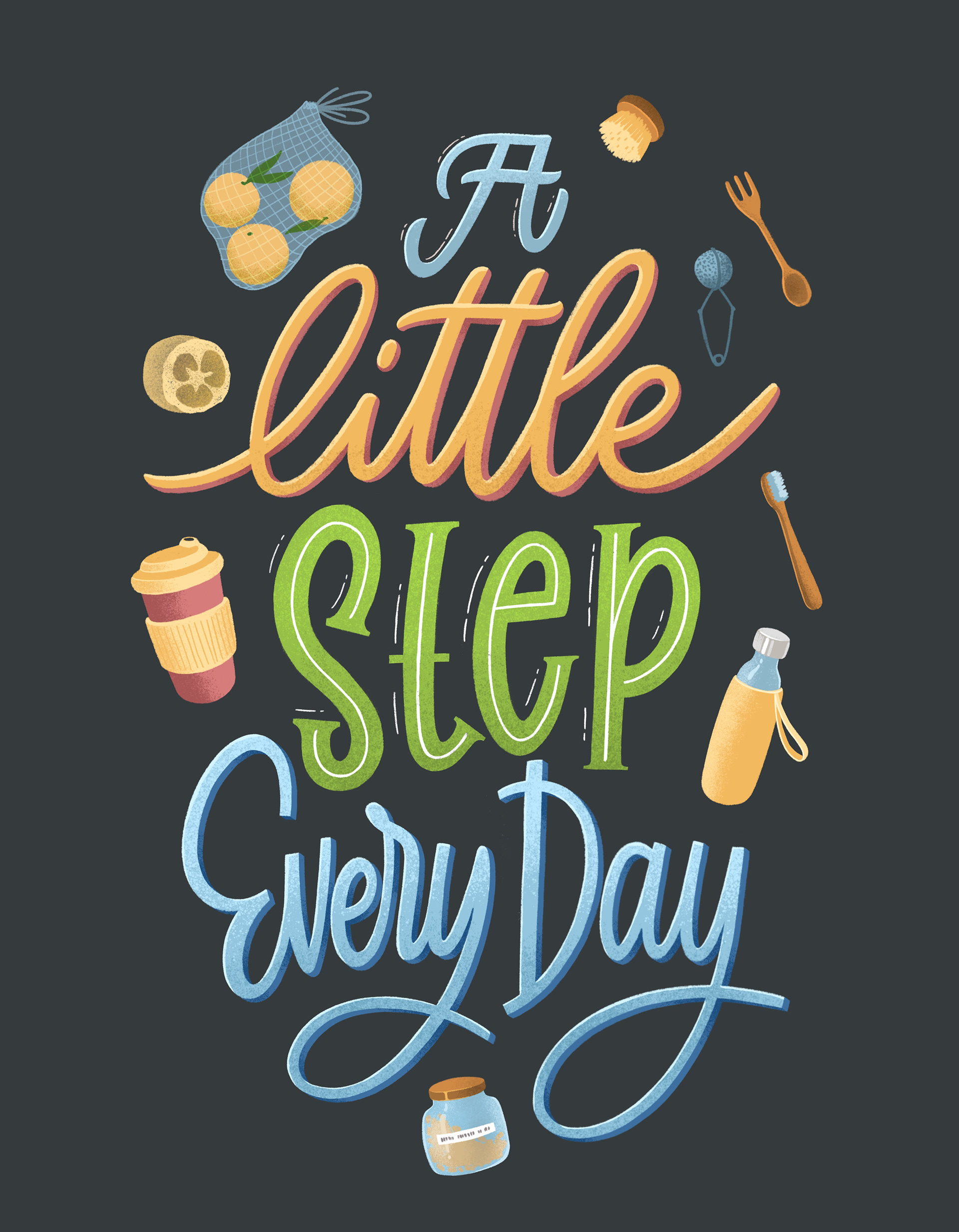 A collection of illustrated quotes and positive messages – blending expressive typography with illustration and color to create visual reminders of kindness, joy, and curiosity.
